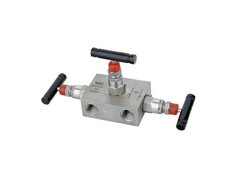 由閥體、兩個截止閥以及一個平衡閥組成。該閥組可直接固定在變送器上,用于從引壓點將信號引入差壓變送器正負測量室,使引壓點與測量室接通或者斷開。